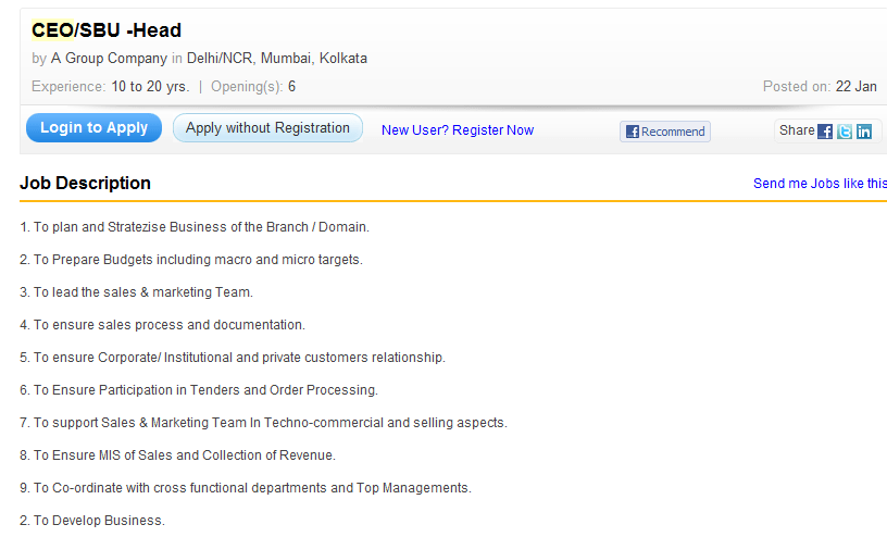 While browsing through one of the job portals for CxO Level position postings, we came across some JDs which had extremely generic and possibly copy pasted content.