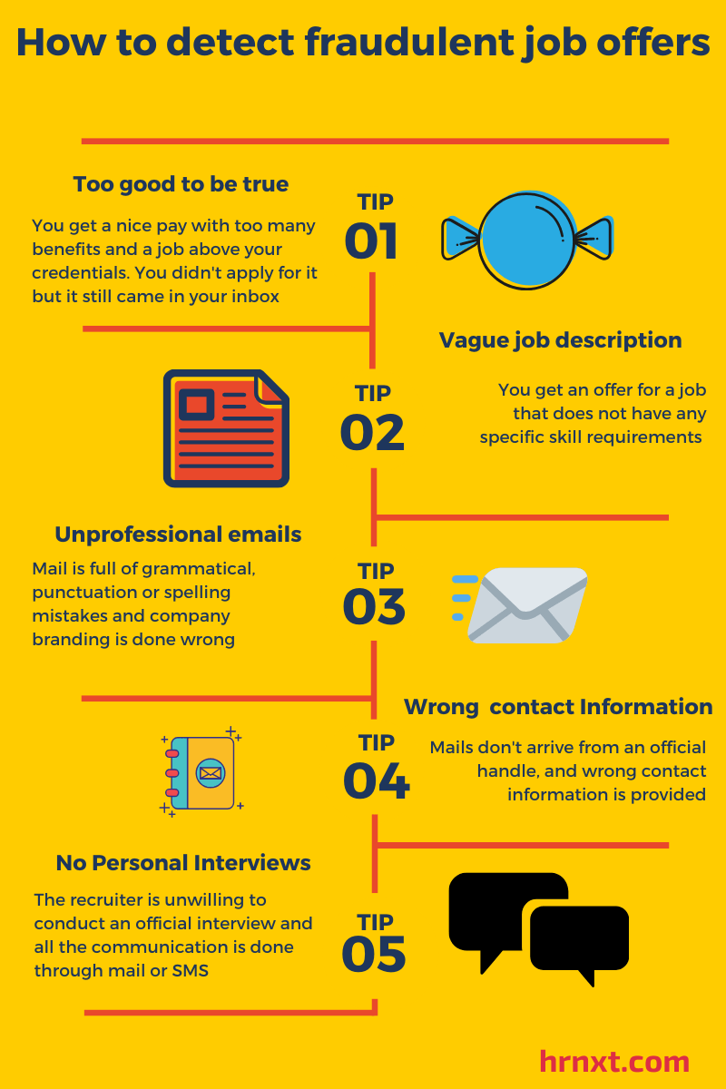We all at some point in our lives have got an email from an employer with an offer too good to be true. The employer promises us a fairly good amount of salary, accommodation, a car and if you’re lucky, you might also get a driver to take you around the city. The offer itself is so tempting that we never realize there might be a catch. Often fresh job seekers face a challenge of staying away from such fake job offers and preventing themselves from getting conned by scammers who make money by preying on their desperation and insecurity.