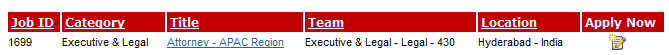 As on Feb 18, 2012, we could just identify one opening on their web site – Executive Legal. (Screen grab below).